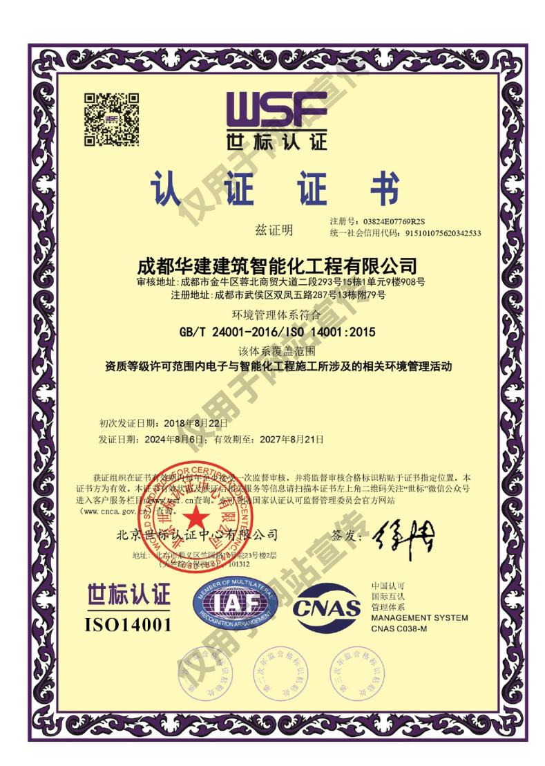 環(huán)境管理體系認證證書