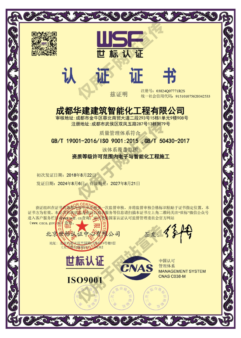 質量管理體系認證證書