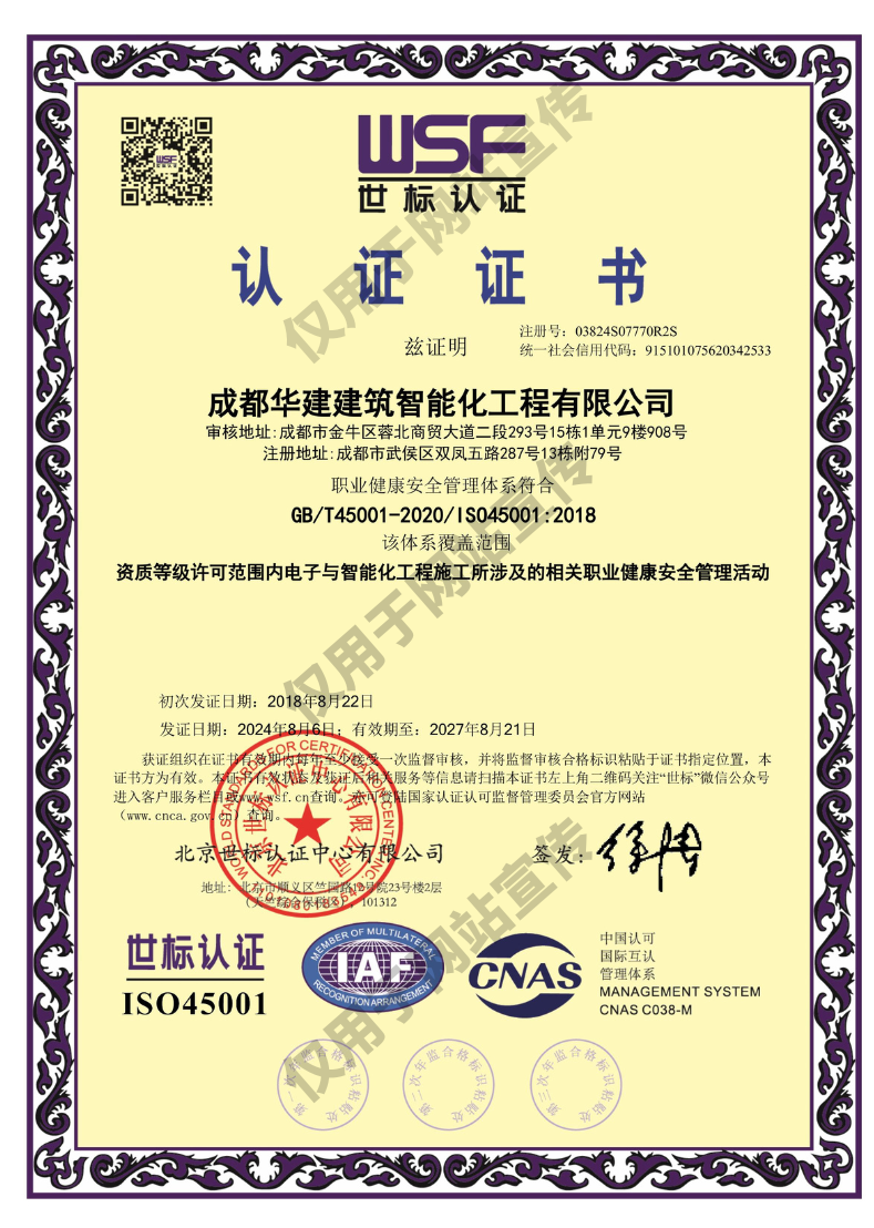 職業(yè)健康安全管理體系證書
